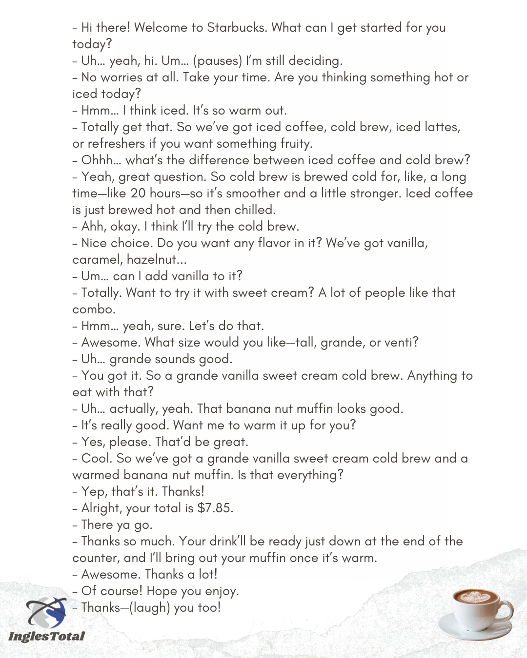 Como pedir algo en Starbucks en Inglés – SECCION: Conversation / Speaking Activity – Clases de conversación #49